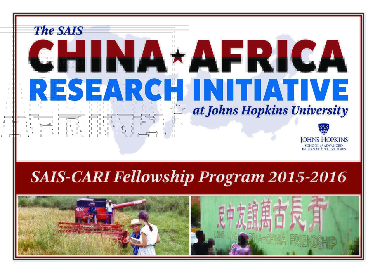 The China Africa Research Initiative at the Johns Hopkins University School of Advanced International Studies announces a call for the second round of applications to the SAIS-CARI Fellows program. SAIS-CARI Fellowships are awarded on a competitive basis or by invitation to researchers, policy-makers, or journalists who wish to spend a concentrated period of time (1 to 2 months) writing or doing field research on an under-explored policy issue related to China’s African engagement.