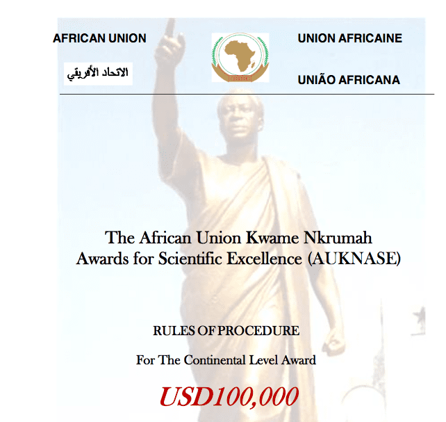 […] The African Union Commission is committed to ensure that science, technology and innovation contribute to our sustainable development efforts. The Constitutive Act, establishing the African Union, recognizes the need to advance the development of Africa by promoting research in all fields, and in science and technology in particular. The Commission, through its Department of Human Resources, Science and Technology implements a strategic science and technology development programme through the Science, Technology and Innovation Strategy (STISA-2024), aimed at contributing to the wellbeing and improved quality of life for the African citizens as articulated in the African Union Agenda 2063. In January 2007, the AU Heads of State and Government “declared 2007 as the launching year for building constituencies and champions for science, technology and innovation in Africa”. The programme is implemented at national level for young researchers, regional level for women scientists and continental level open to all scientists. The Continental level is the highest level of the programme. The objective is to give out science awards to top African scientists for their achievements and valuable discoveries and findings in science, technology and innovation. AUKNASE reflects and underscores a success story and the critical role of science and technology in the development and integration of Africa. Under this programme prizes are awarded to top African scientists in each of the following two sectors (a) Life and Earth Science and innovation; and (b) Basic Science, Technology and Innovation at the national, regional and continental levels. The African Union Kwame Nkrumah Awards for Scientific Excellence Programme is implemented using the set of rules of procedure. The African Union Kwame Nkrumah Awards for Scientific Excellence Programme (AUKNASE) shall be organized at three levels: 1. Continental Level where two awards of USD 100,000 are given to African pioneer scientists 2. Regional Level where two African women scientists per each of the five geographical regions of Africa are given USD 20,000 each, and 3. National Level dedicated to young African researchers, where two prizes are given per country and the value of the prizes is determined by the African Union Commission […]