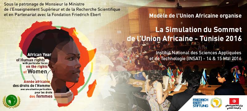 Sous le patronage de Monsieur le Ministre de l’Enseignement Supérieur et de la Recherche Scientifique et en partenariat avec la Fondation Friedrich Ebert, nous avons l’honneur de vous annoncer l’ouverture des candidatures pour la troisième édition de la simulation du Sommet de l’Union Africaine, Tunisie 2016 qui aura lieu le 14 et 15 Mai à Tunis