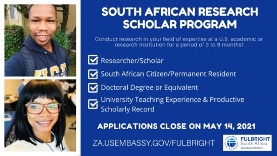 Applications are now open for the 2022–2023 Fulbright South African Research Scholar Program. This program is an opportunity for South African university faculty or research institute professionals to conduct research in their field of expertise at an academic or research institution in the United States for a period of three to nine months.