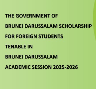 Applications are now open for the 2025/2026 Government of Brunei Darussalam Scholarships. The Ministry of Foreign Affairs is pleased to invite applications for the Government of Brunei Darussalam Scholarship to Foreign Students Tenable in Brunei Darussalam for the 2025/2026 academic session.