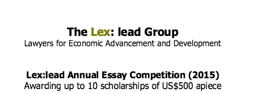 […] for Economic Advancement and Development (Lex:lead) is again happy to announce a scholarship competition for students in developing countries. Up to 10 one-time scholarships of US$500 will be awarded in February 2017 to winning essays […]