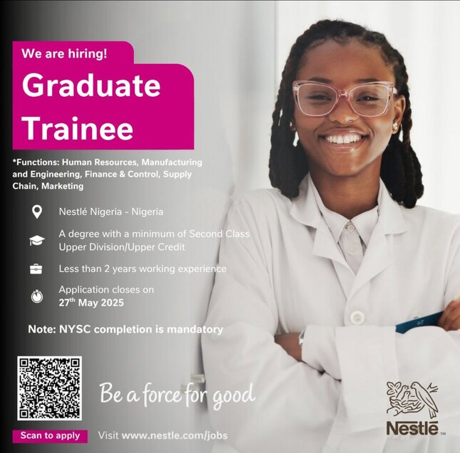 Applications are now open for the 2025 Nestlé Nigeria Graduate Trainee Programme. This is a fantastic opportunity for young graduates with less than 2 years of work experience to kick-start or take their careers to another level with the number one food company in the world. The programme is designed to provide young talents with hands-on experience, comprehensive training, and mentorship from the best professionals in their respective fields.
