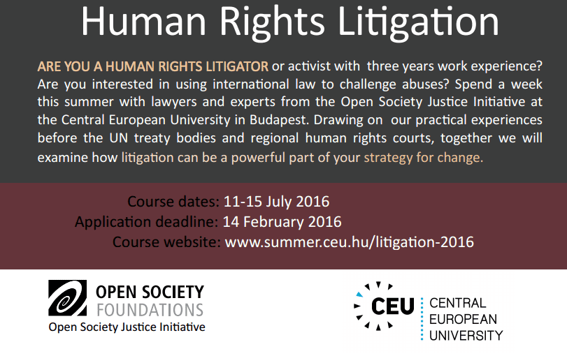 […] Open Society Justice Initiative and Central European University invite applicants for the 2017 Summer School in Human Rights Litigation, to be held in Budapest from July 10 to […]
