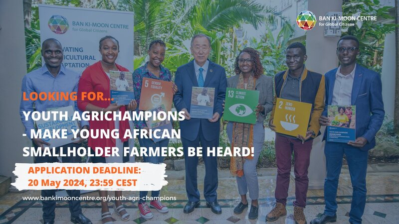 Applications are now open for the 2024 Ban Ki-moon Centre for Global Citizens (BKMC) Youth AgriChampions.