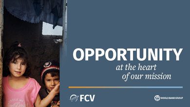 To address the FCV challenge, the WBG has launched a recruitment drive to fill over 100 positions by June 30, 2020. The World Bank Group (WBG) welcomes all qualified individuals with diverse professional, academic, and cultural backgrounds. Specifically, women and persons with disabilities are strongly encouraged to apply.
