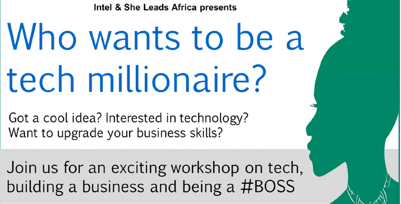 She Leads Africa has partnered with Intel Corp to host educational workshops for tech entrepreneurs in cities across the continent. The workshop series will start in Nairobi before moving to Johannesburg, Lagos and many more. The workshop is targeted towards female developers who are looking to build their businesses and eventually IPO for millions of dollars as well as all the #BossWomen who are running tech enabled businesses.